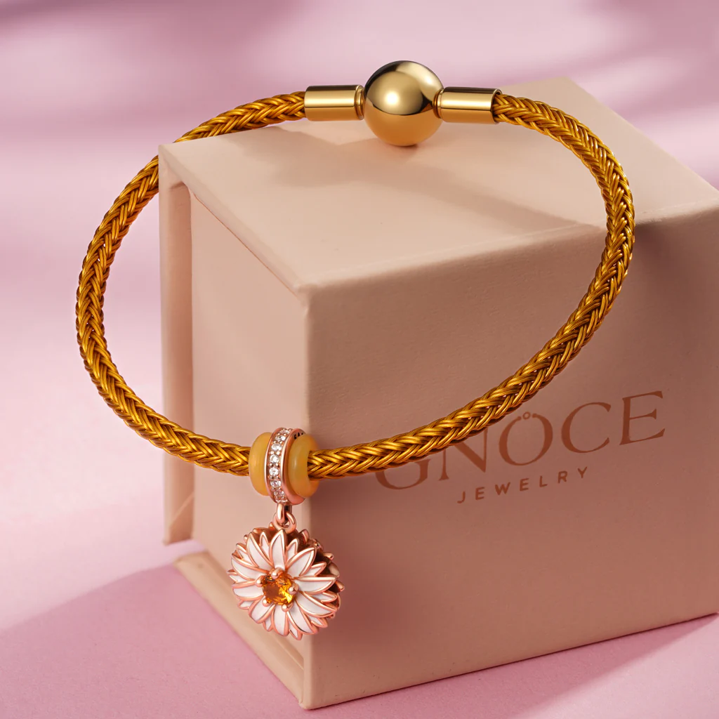 Esta pulsera en tonos marrones tiene un aspecto simple pero elegante. Hecha a mano con una hebilla de acero inoxidable, cuenta con un cierre de presión fácil de usar, y la parte principal está tejida con cable de acero impermeable, lo que la hace más duradera. Además, al comprar esta pulsera, recibirás dos topes para asegurar tus cuentas y Charms.