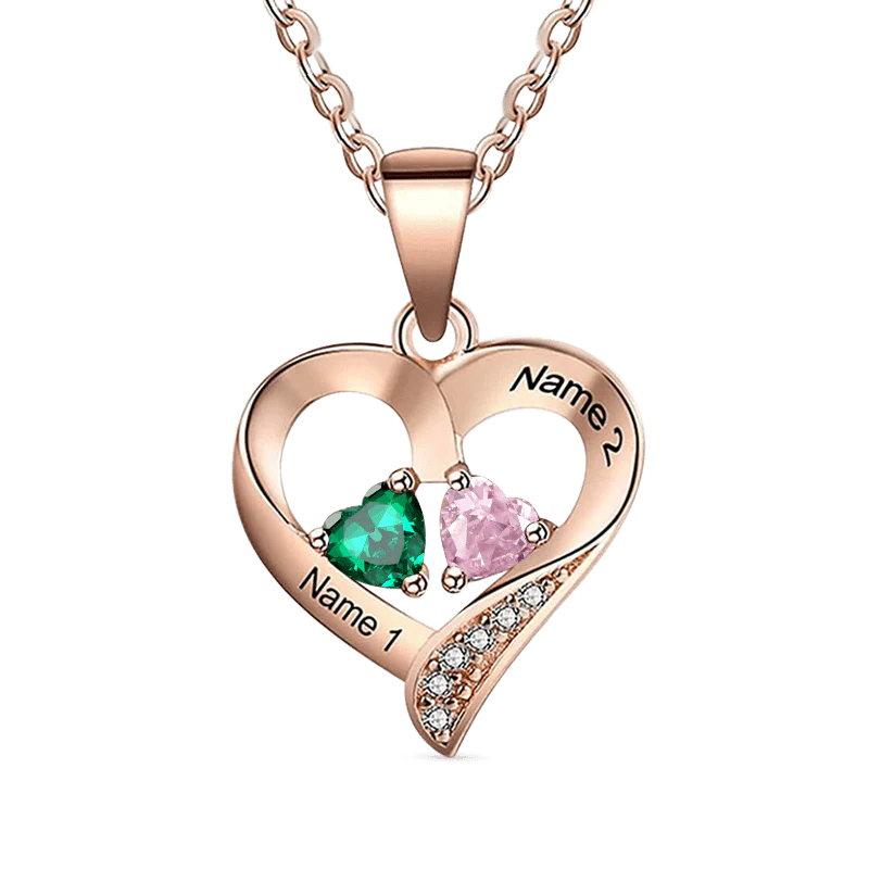 Gnoce Collar de Diamantes en Forma de Corazón Grabable con Piedra de Nacimiento