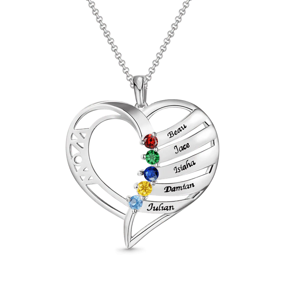 Elaborado en radiante plata de ley 925, este colgante sentimental presenta un diseño de corazón tricolor que alberga de 1 a 6 piedras de nacimiento personalizables en forma de corazón, que simbolizan preciados lazos familiares o hitos importantes. Un recuerdo vibrante y emotivo, perfecto para el Día de la Madre, aniversarios o para celebrar el papel insustituible de una madre.
