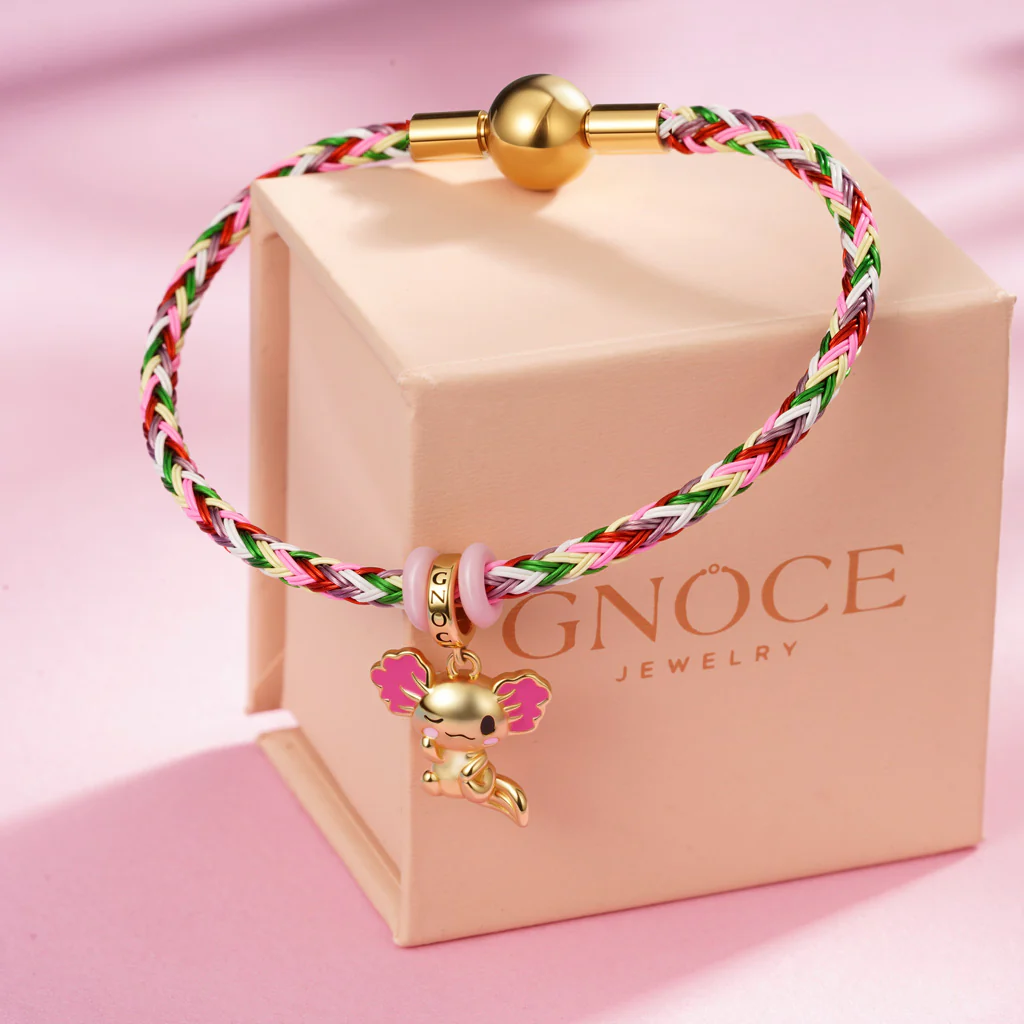 Esta pulsera multicolor tiene un aspecto simple pero elegante. Hecha a mano con una hebilla de acero inoxidable, cuenta con un cierre de presión fácil de usar, y la parte principal está tejida con cable de acero impermeable, lo que la hace más duradera. Además, al comprar esta pulsera, recibirás dos topes para asegurar tus cuentas y Charms.