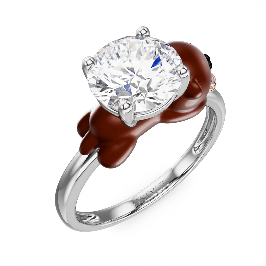 Adorable, juguetón y lleno de encanto, ¡igual que tu criatura favorita! Este encantador anillo de moissanita con forma de nutria presenta una deslumbrante moissanita de talla redonda de 1 quilate (color D, claridad VVS1) que irradia un fuego brillante y un brillo excepcional. El caprichoso diseño de nutria envuelve con cariño la piedra, creando un anillo único. Una pieza que celebra tu pasión por estos encantadores animales.
