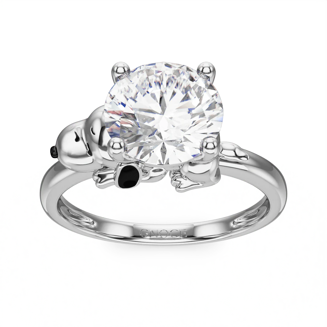 Gnoce Peanuts Snoopy Anillo Moissanita con Corte Redondo Abraza