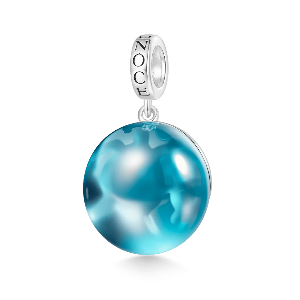 Elaborado en cristal marino azul pulido a mano que captura los matices cambiantes del océano, este colgante está elaborado en plata de ley 925 con un diseño calado de tortuga marina en el reverso. Lo que comenzó como un simple fragmento se transforma en una obra maestra marina: la estructura de plata refracta la luz a través de los patrones de caparazón grabados con láser, proyectando sombras acuáticas que danzan como la luz del sol entre las olas.